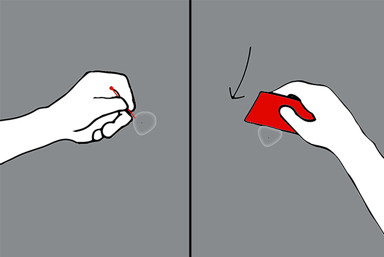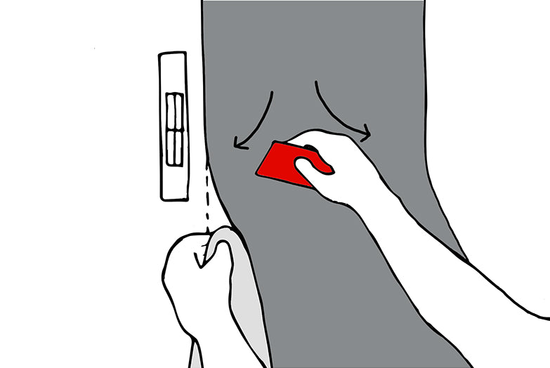 Slowly pull the backing paper away and using your applicator work your way down the wallpaper from centre out, until you reach the bottom.