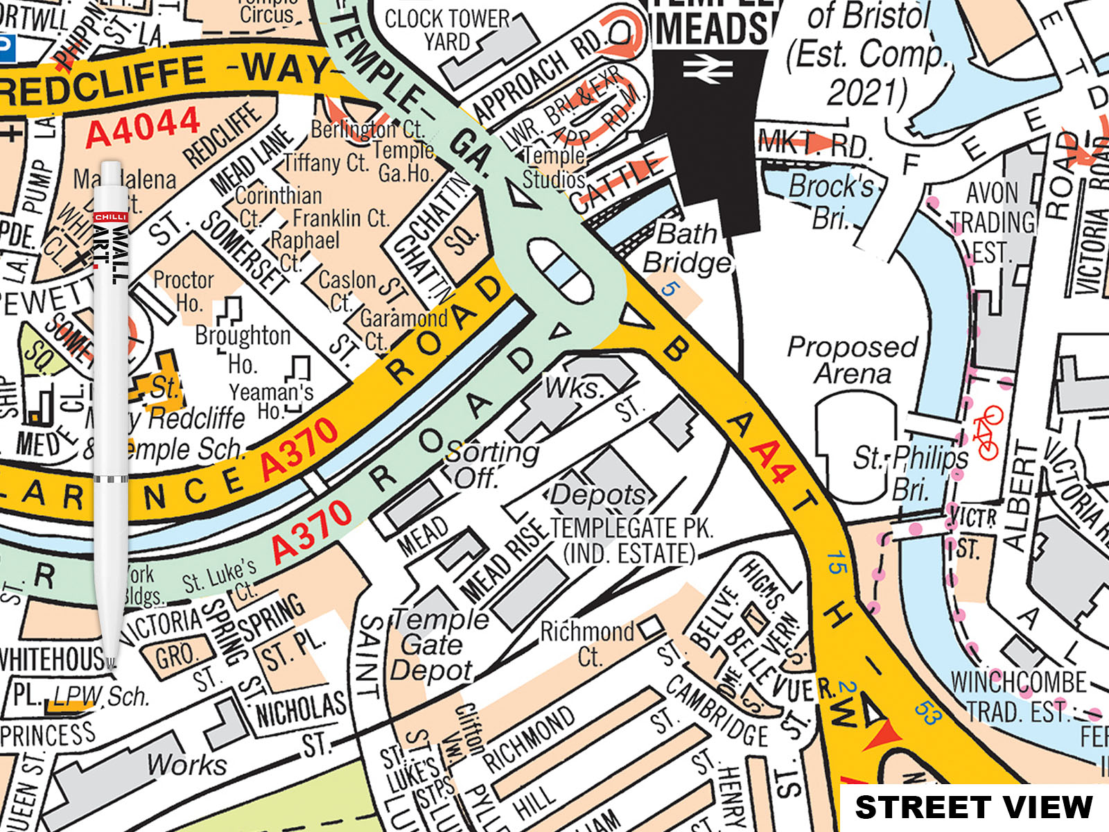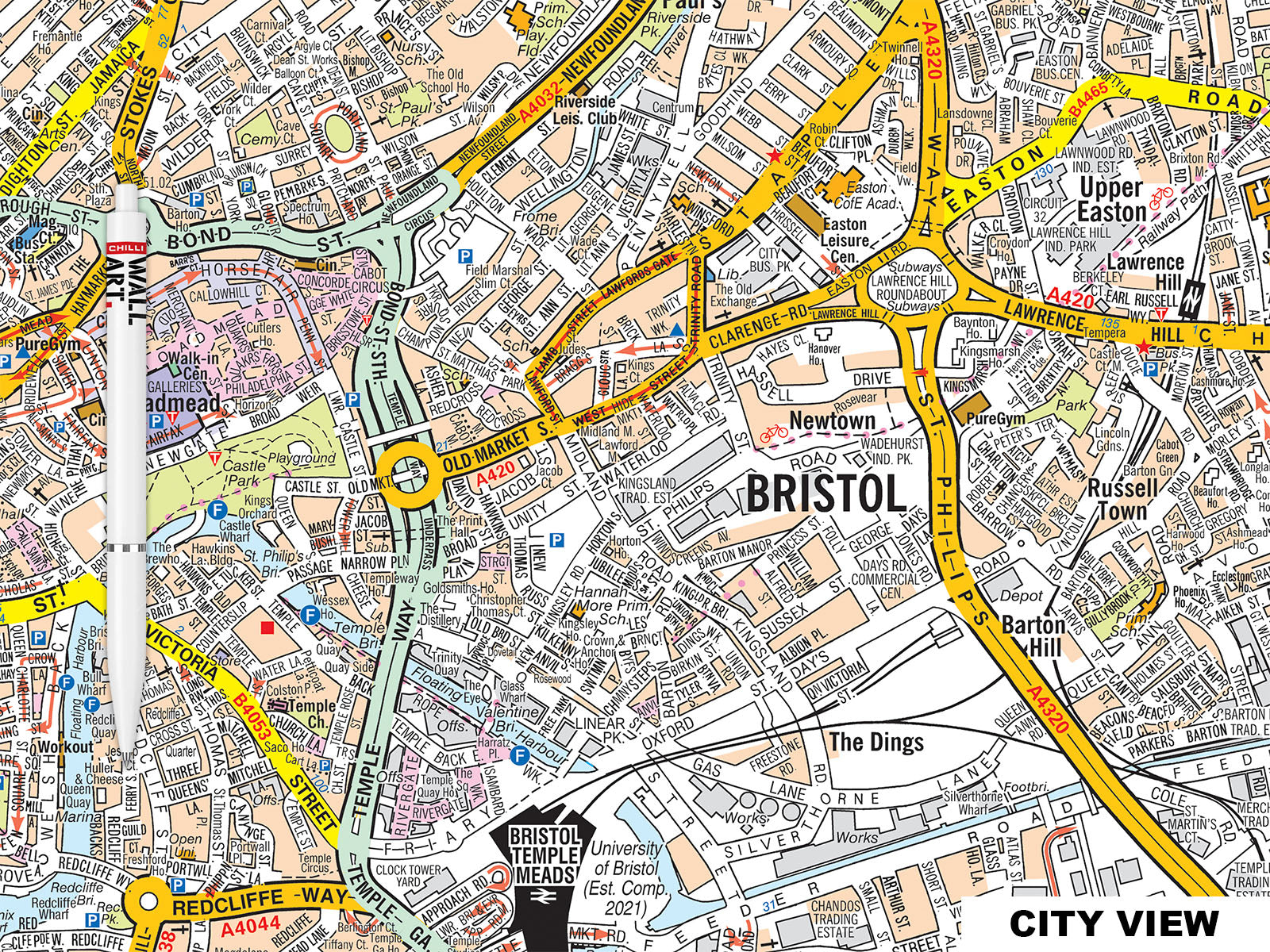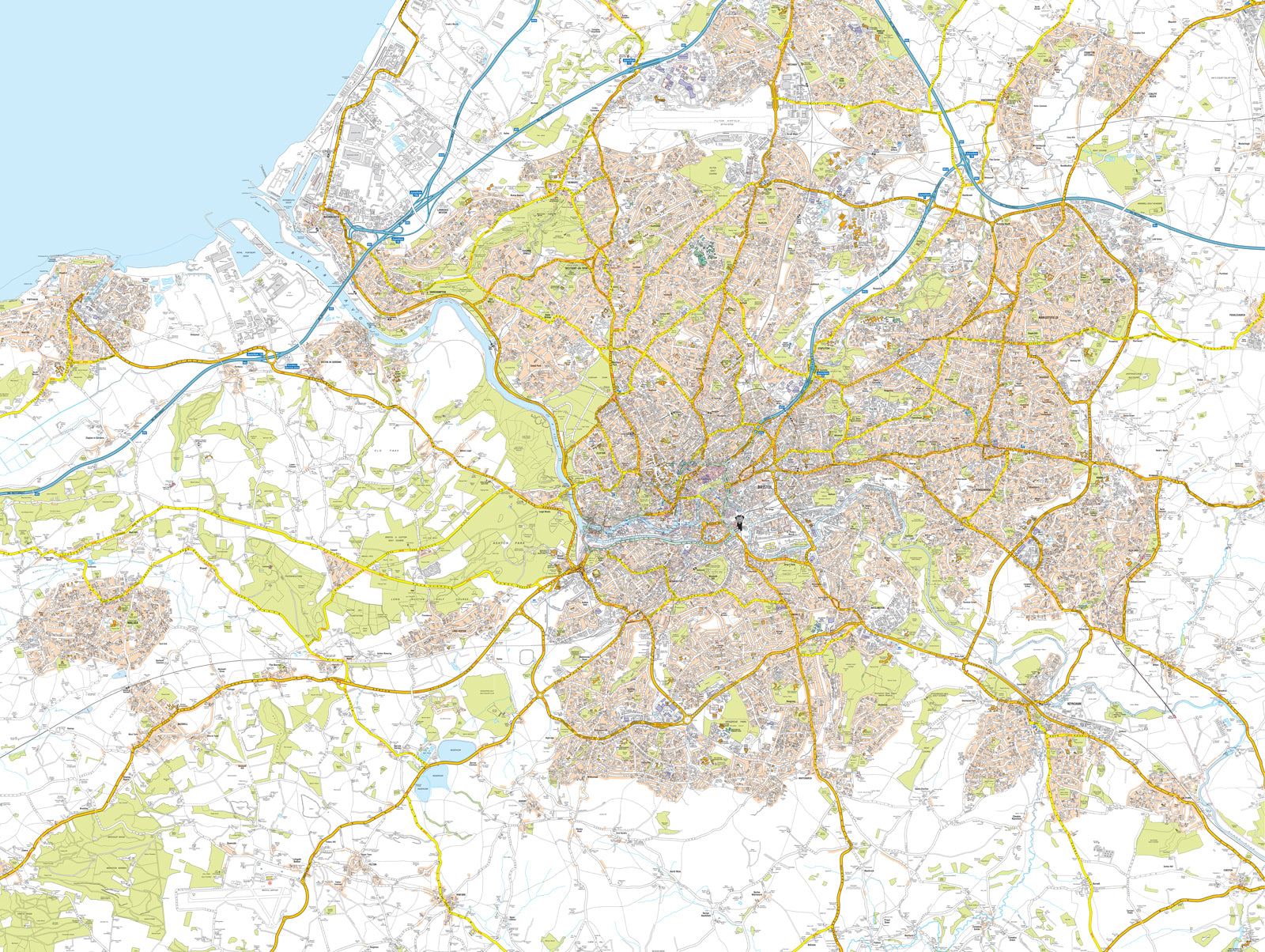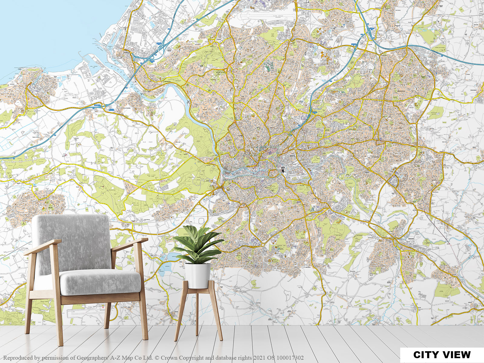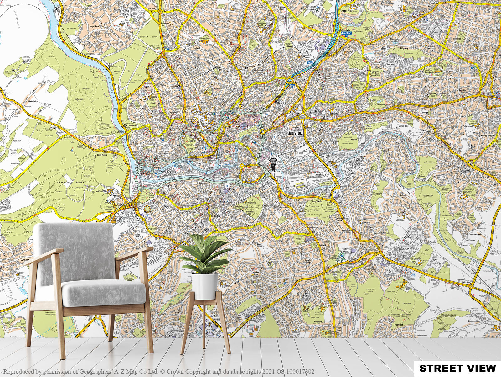 The iconic A-Z map! This Bristol map is a fantastic backdrop for any commercial office, meeting room, home office, study room or any room for that matter! The districts of Bristol and the surrounding areas are clearly detailed.