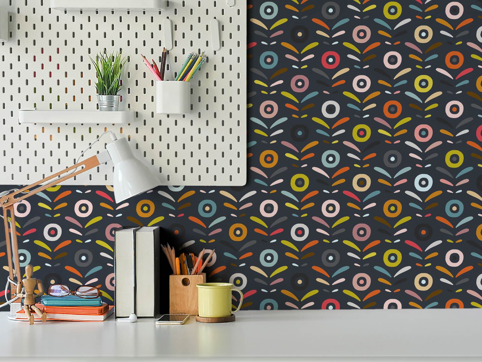 This stylish abstract floral design adds a modern pop of colour to your interior space. Perfect for creating a feature wall or for full room coverage.