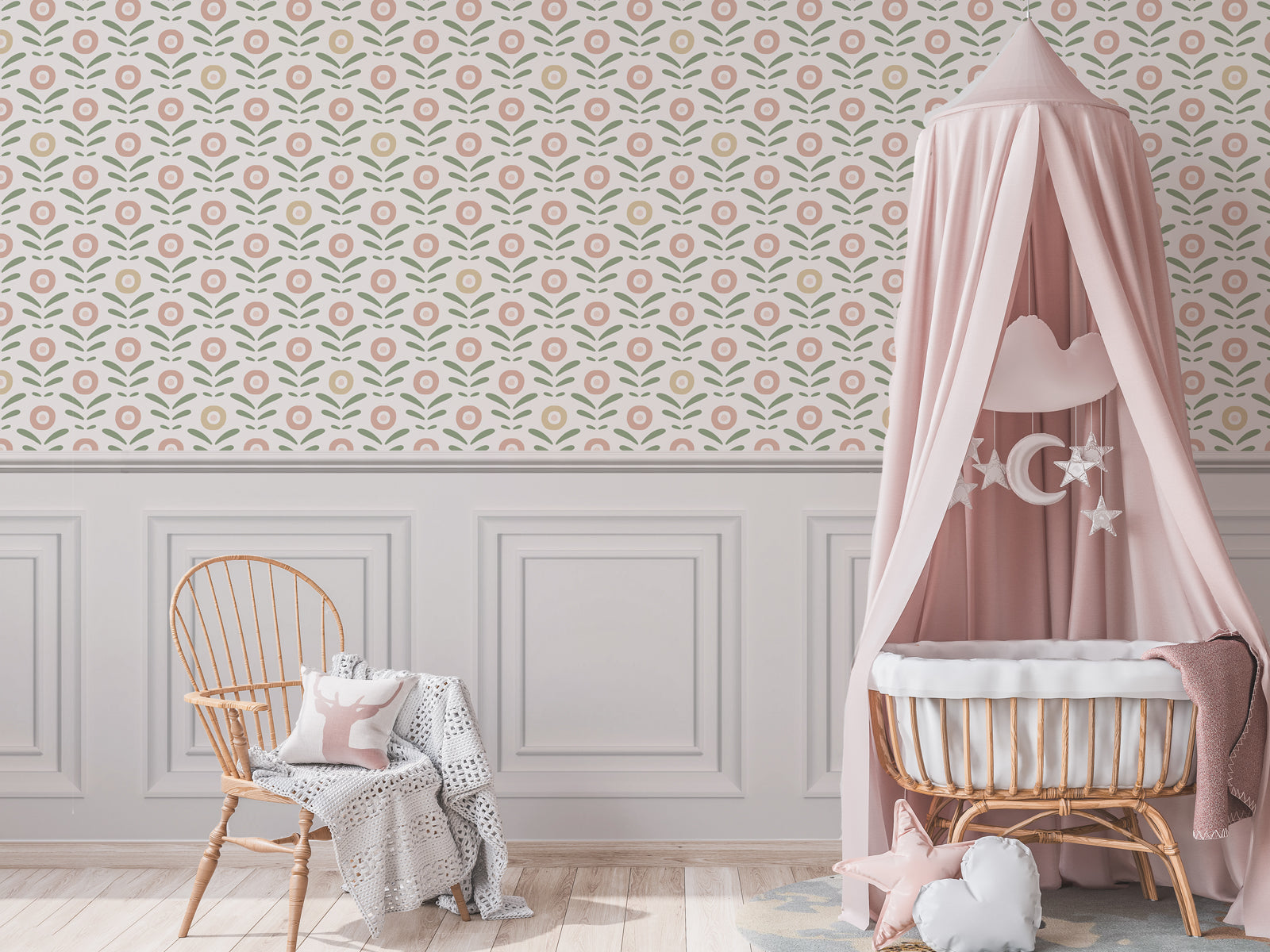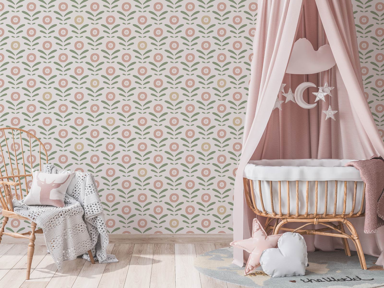 This stylish abstract floral design adds a modern pop of colour to your interior space. Perfect for creating a feature wall or for full room coverage.