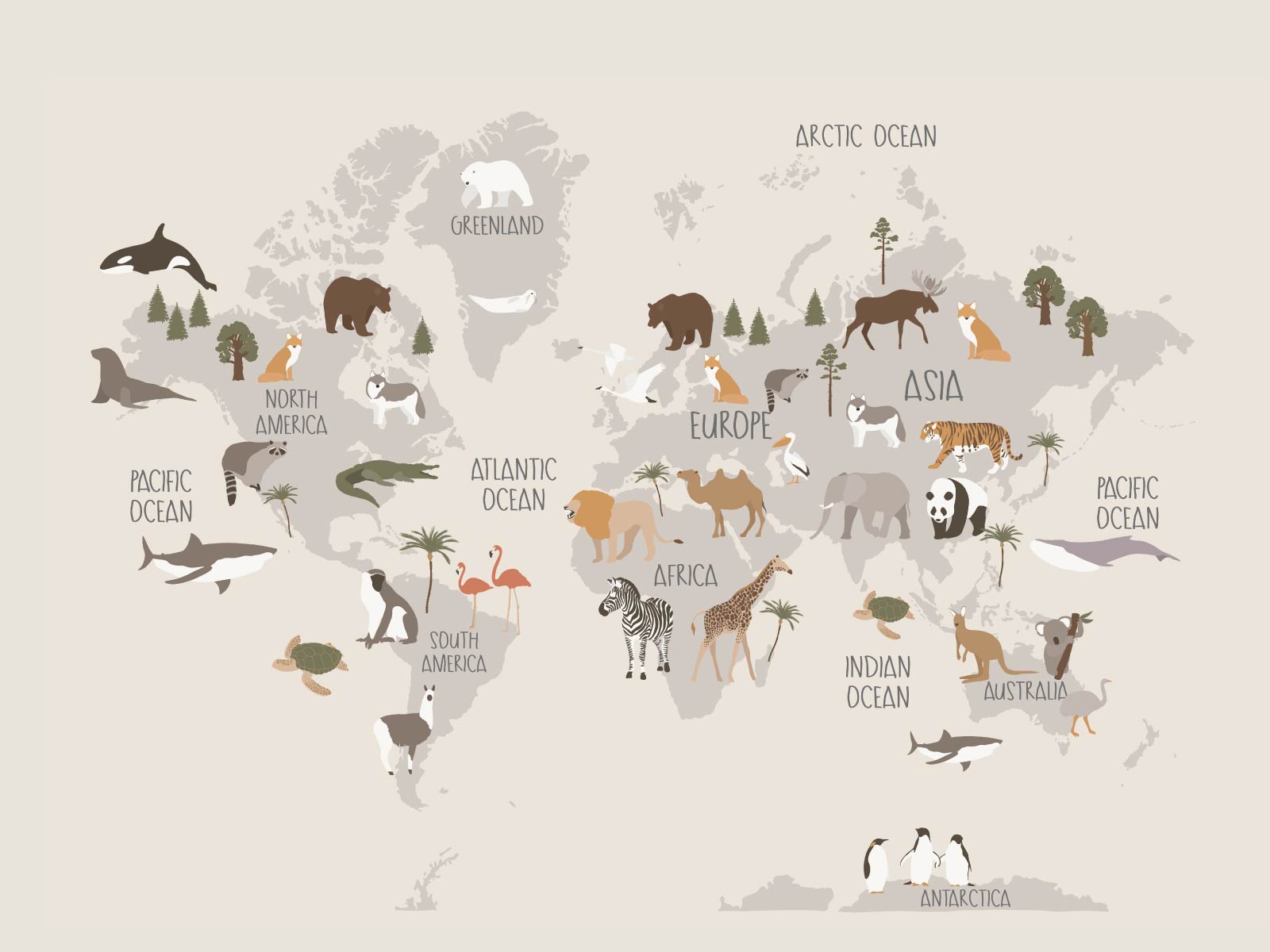 Animal World Map - Neutral