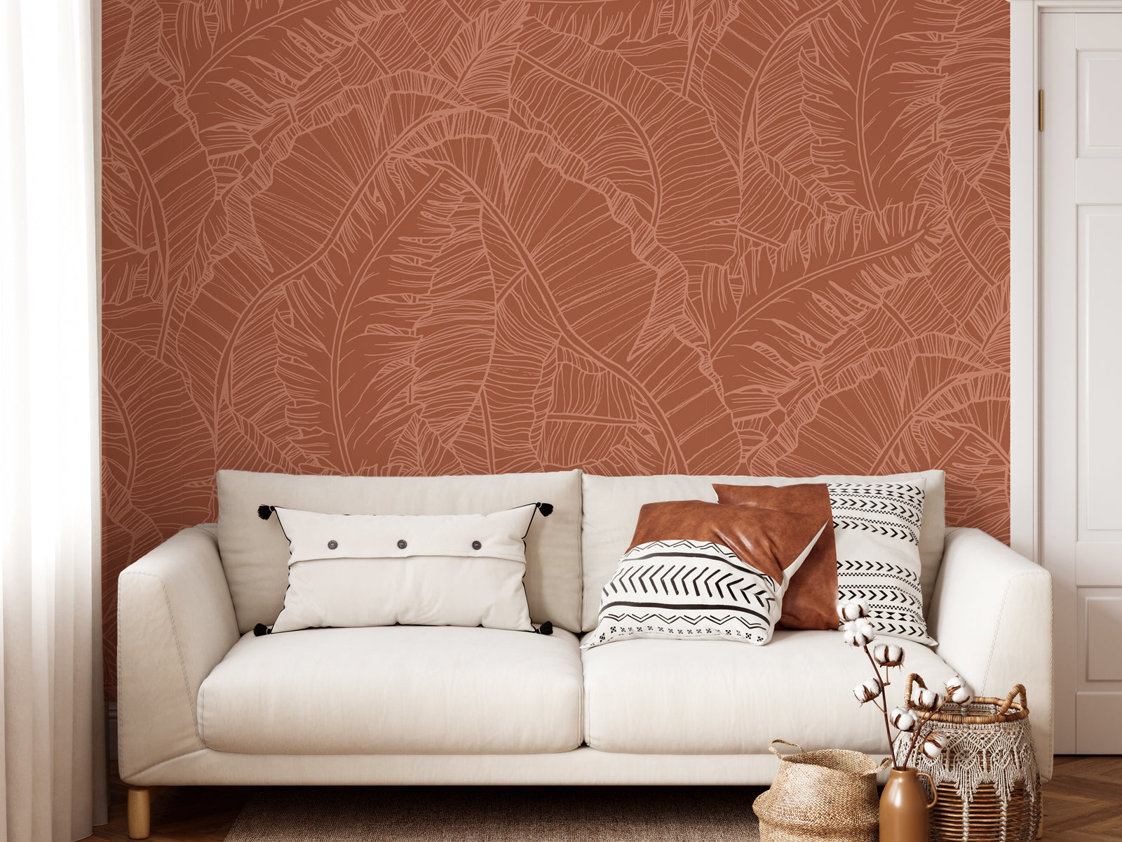 Our tropical banana leaf wallpaper brings a vibrant feel to your living space with its contemporary graphic leaves. Create a stunning feature wall or full room coverage.