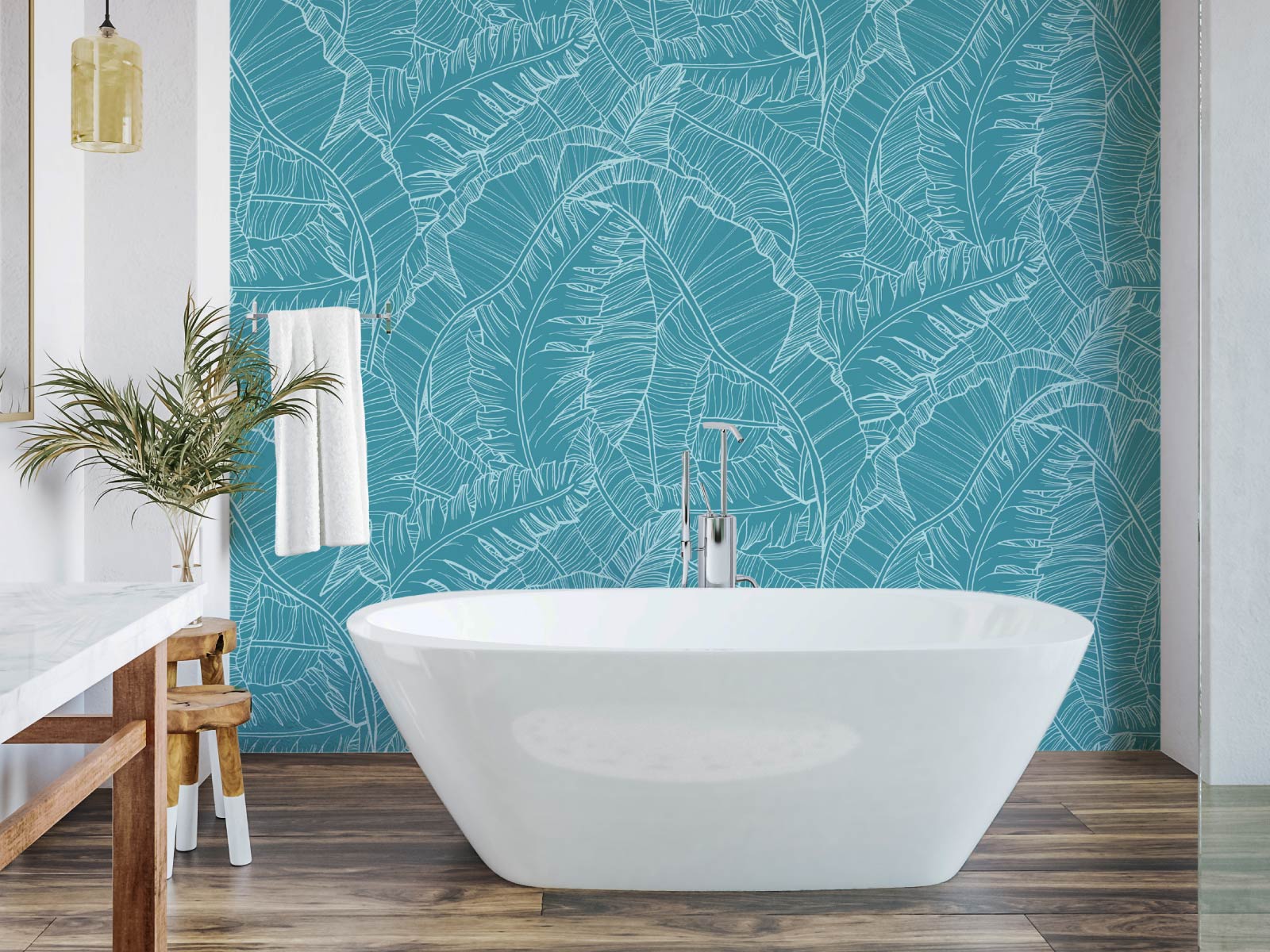 Our tropical banana leaf wallpaper brings a vibrant feel to your living space with its contemporary graphic leaves. Create a stunning feature wall or full room coverage.
