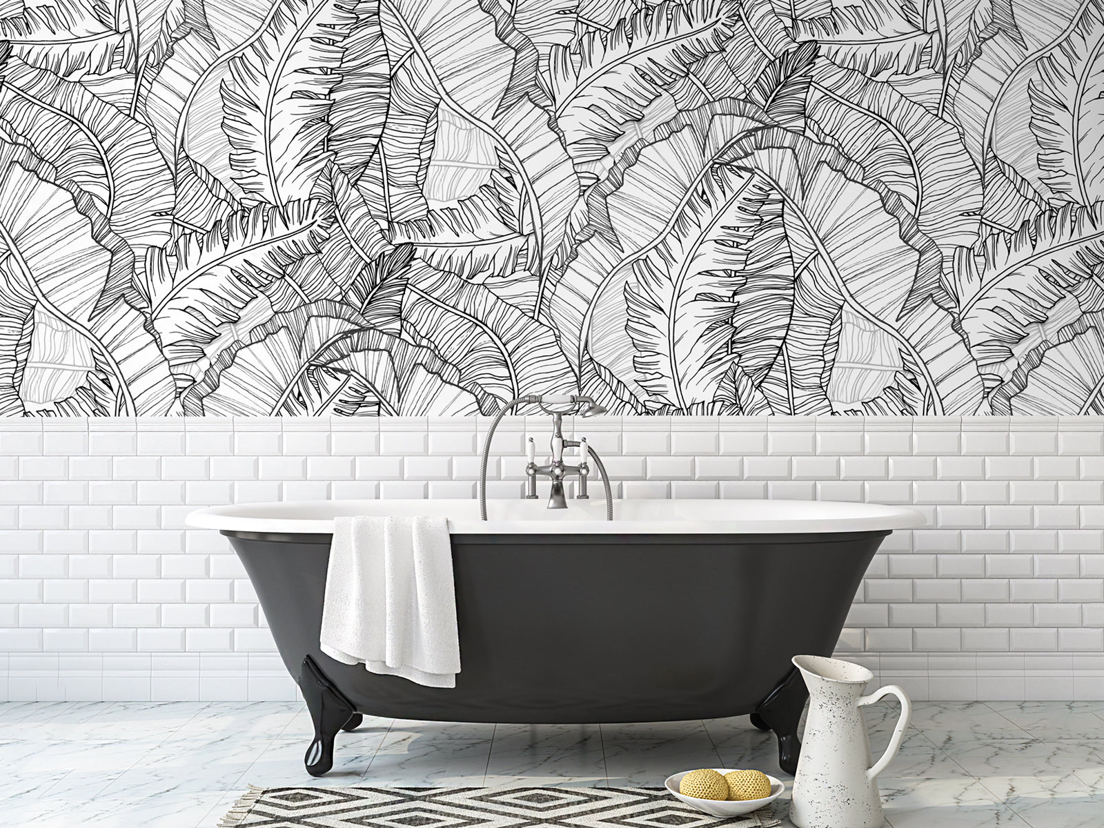 Our tropical banana leaf wallpaper brings a vibrant feel to your living space with its contemporary graphic leaves. Create a stunning feature wall or full room coverage.