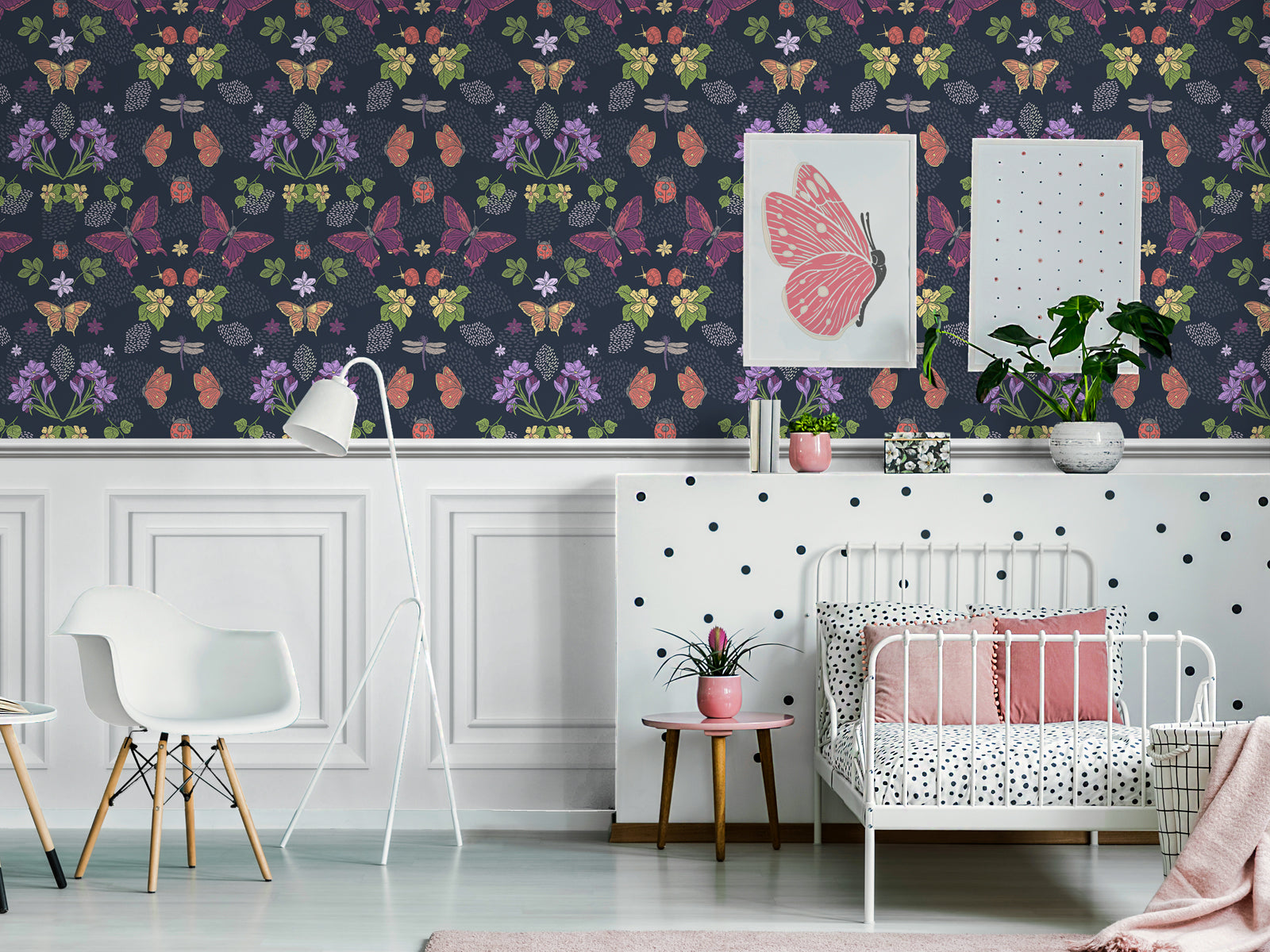 Beautiful Bugs! The world needs bugs! Butterfiles, snails, ladybirds, dragonfly and flora combine to bring your walls alive. Transform your living space, create a stunning feature wall or go for full room coverage.