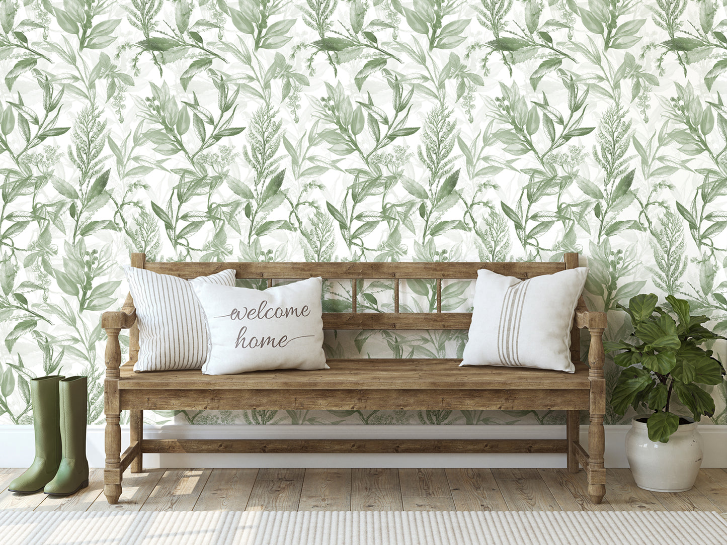 Bring the outside in with this botanical leaf pattern, the perfect backdrop for a calm interior space. Create a stunning feature wall or full room coverage.