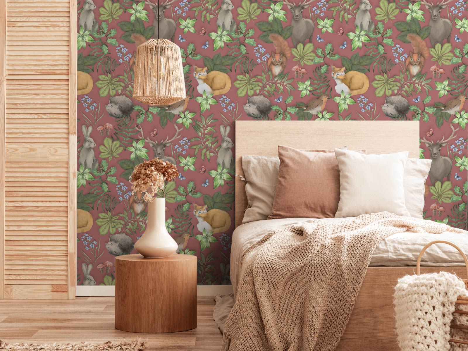 Create a magical woodland experience in your nursery with this luxurious hand drawn woodland wallpaper. It makes an ideal feature wall full of cute animal friends.