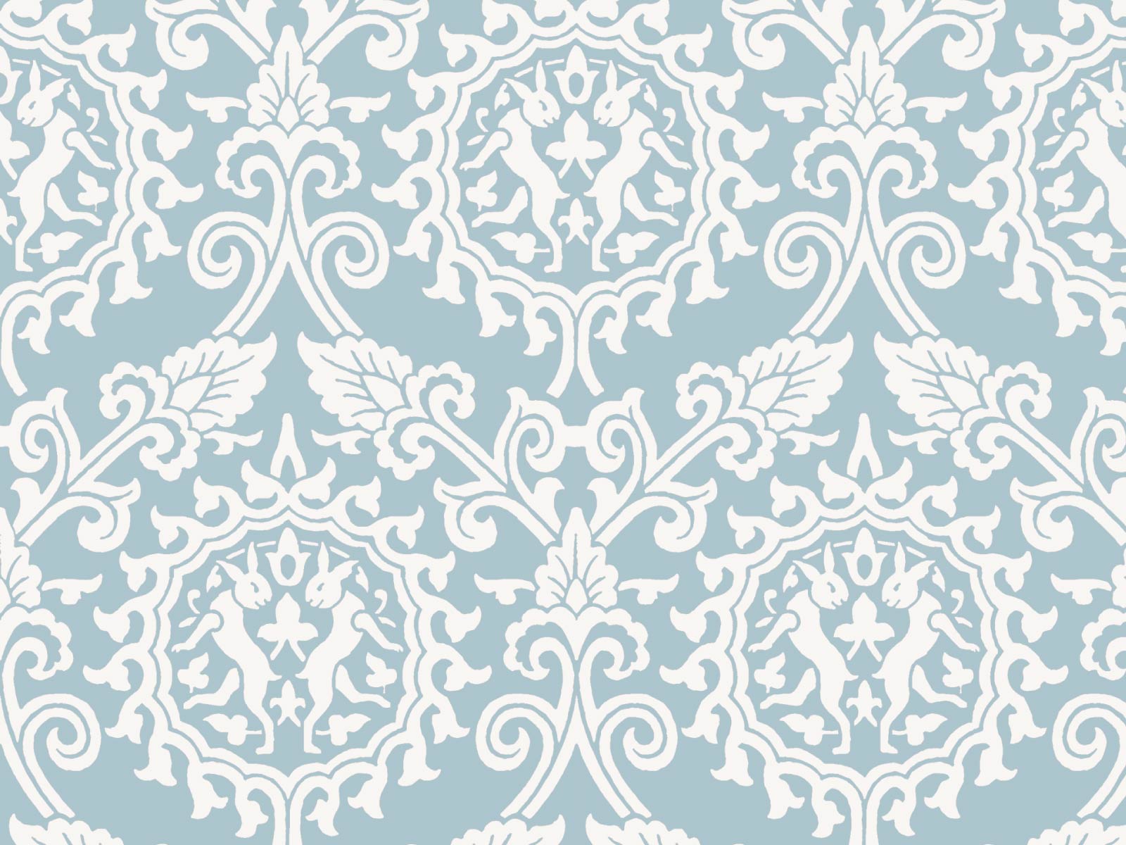 This Damask rabbit wallpaper will make a stylish statement in your home. It features beautiful ornate leaves and rabbits that form an intricate damask pattern. Perfect for creating an eye-catching feature wall.