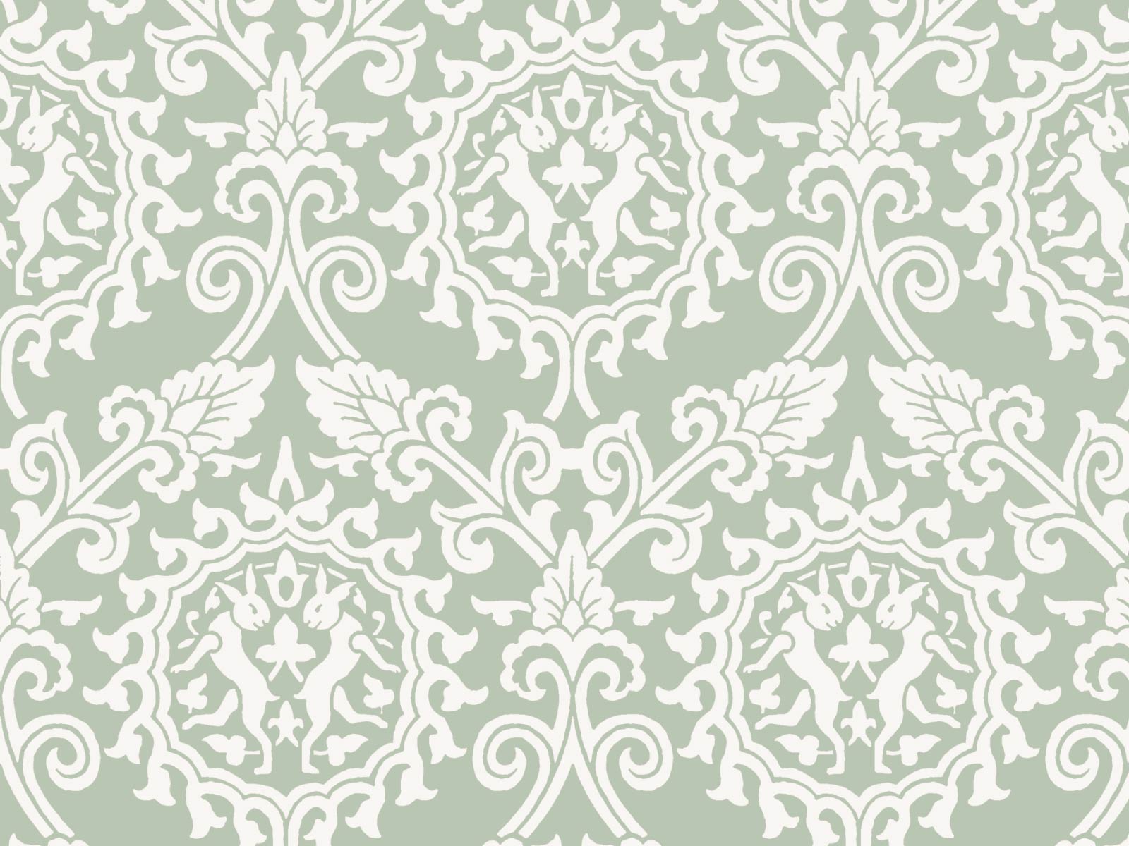 This Damask rabbit wallpaper will make a stylish statement in your home. It features beautiful ornate leaves and rabbits, that form an intricate damask pattern. Perfect for creating an eye-catching feature wall.