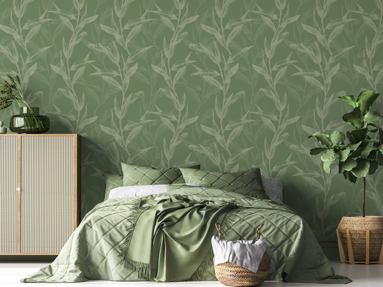 Creating an atmosphere of relaxation is easy with this nature-inspired wallpaper. This wallpaper would make a gorgeous feature wall or wrap all the walls with this delicate foliage for an impactful living room, dining room, or kitchen.
