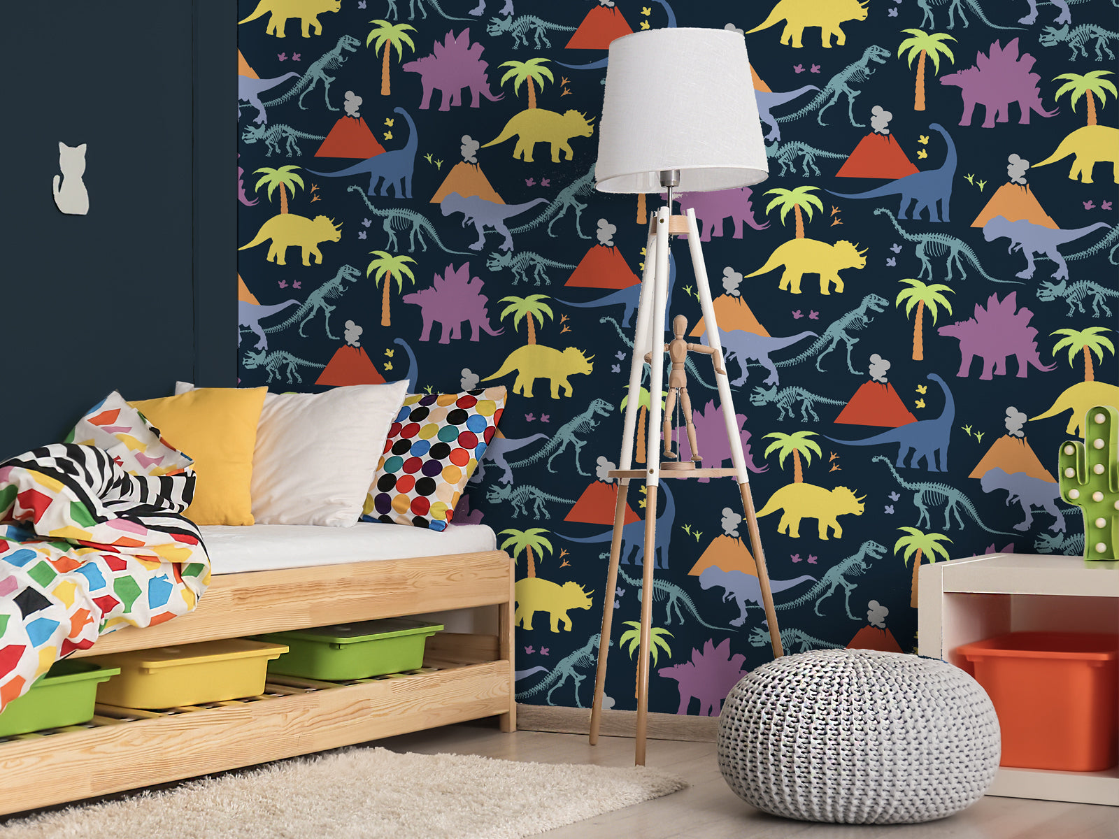 Bring a splash of colour to your walls with this stunning Dino wallpaper. Colourful backgrounds make this perfect for any child's bedroom or playroom.