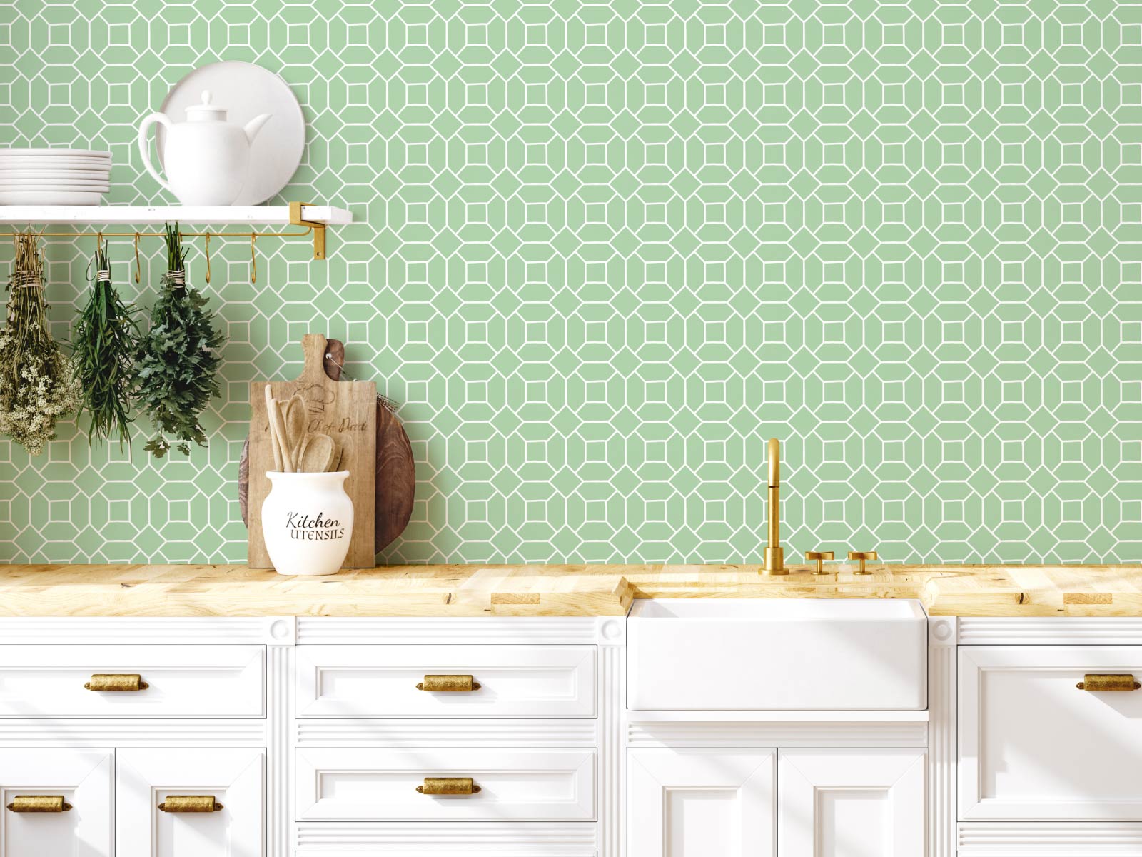 This retro-inspired geometric wallpaper is an excellent choice for updating a whole room in the house or creating a stunning feature wall.