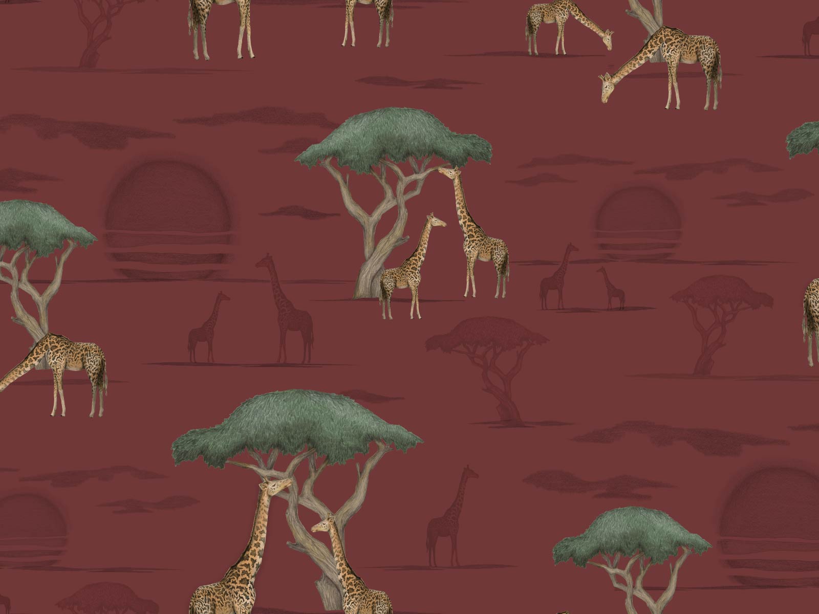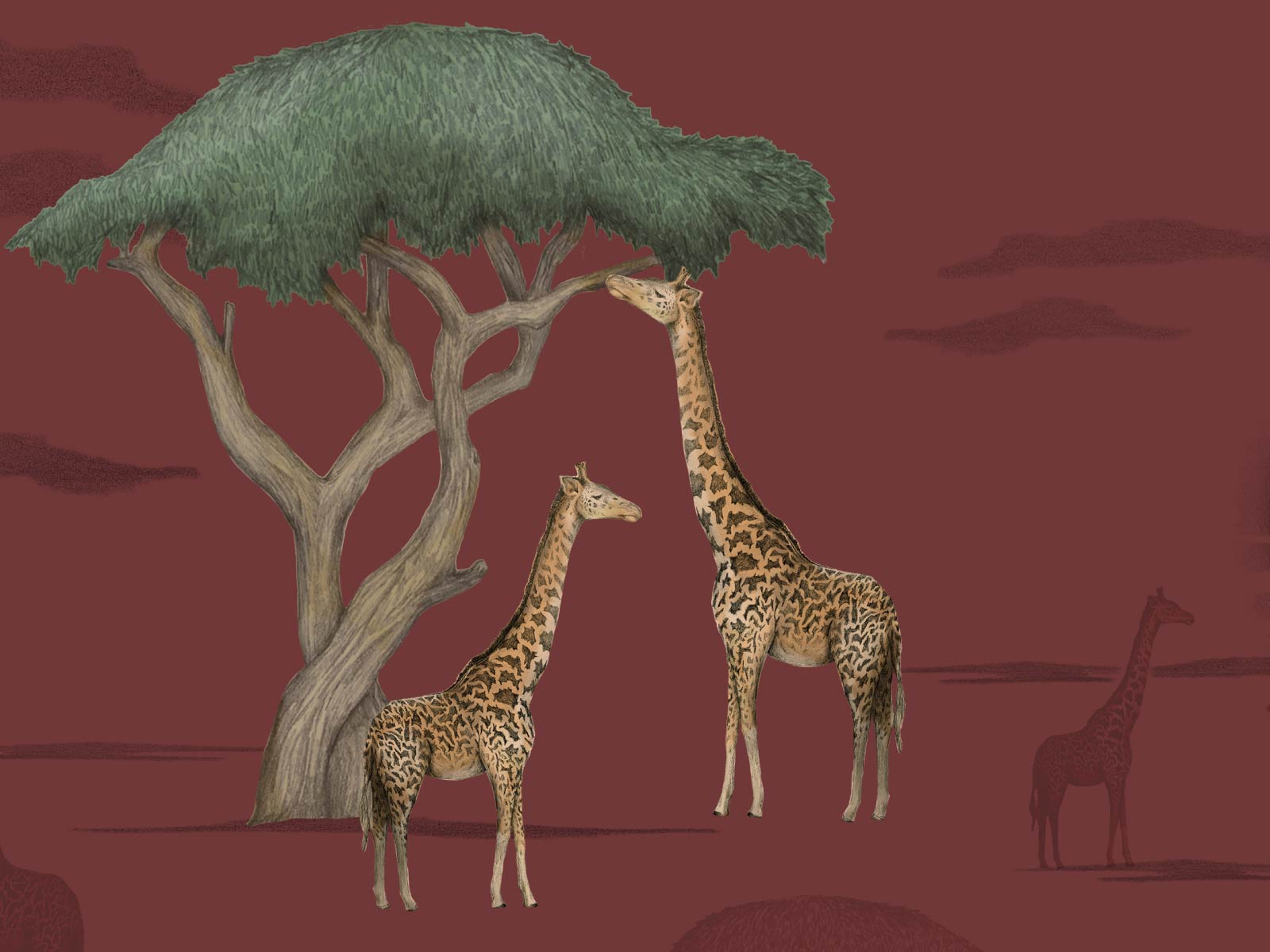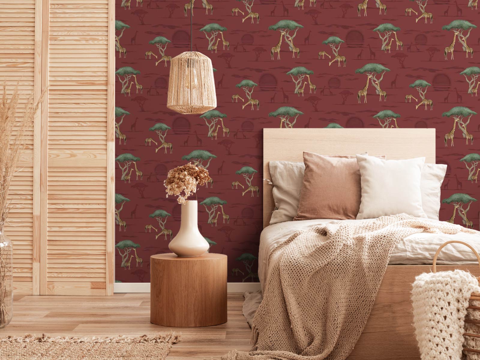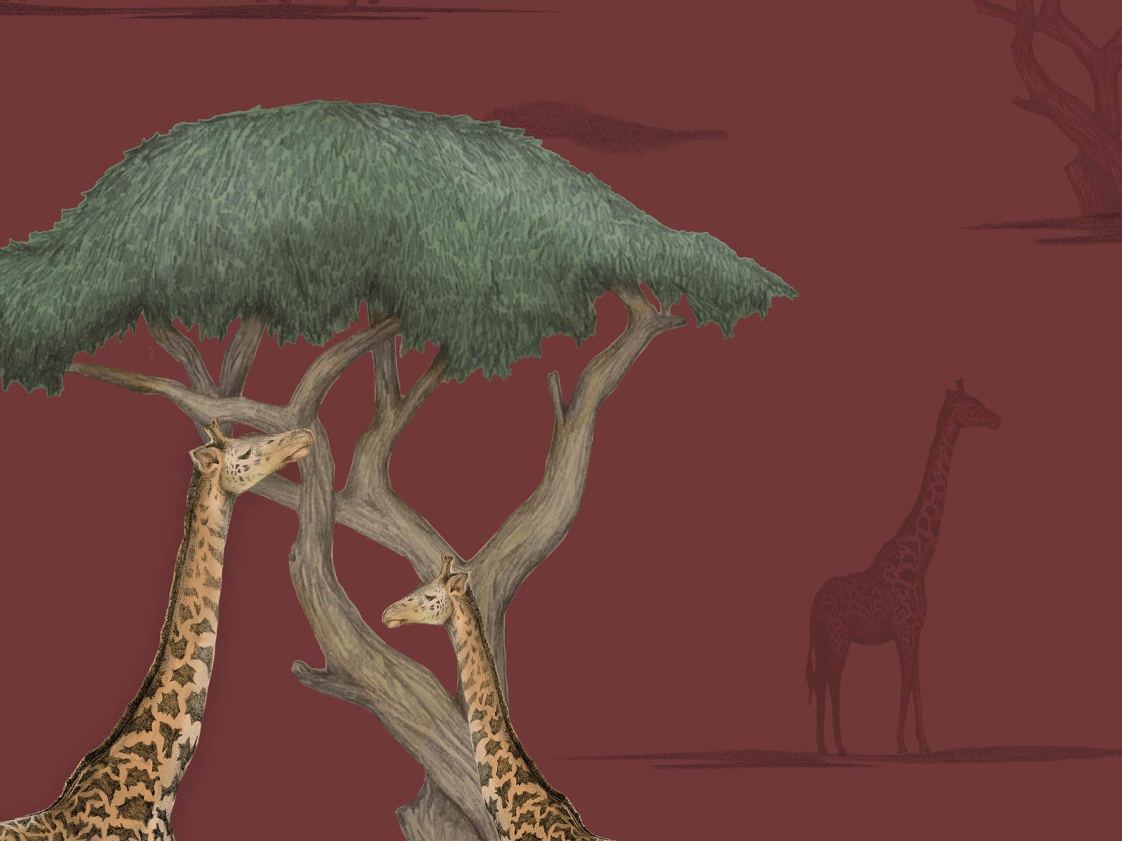 The gorgeous hand-drawn giraffes among the trees is a sophisticated design and can be used as a feature wall or full room coverage. it will enhance the style of any room.