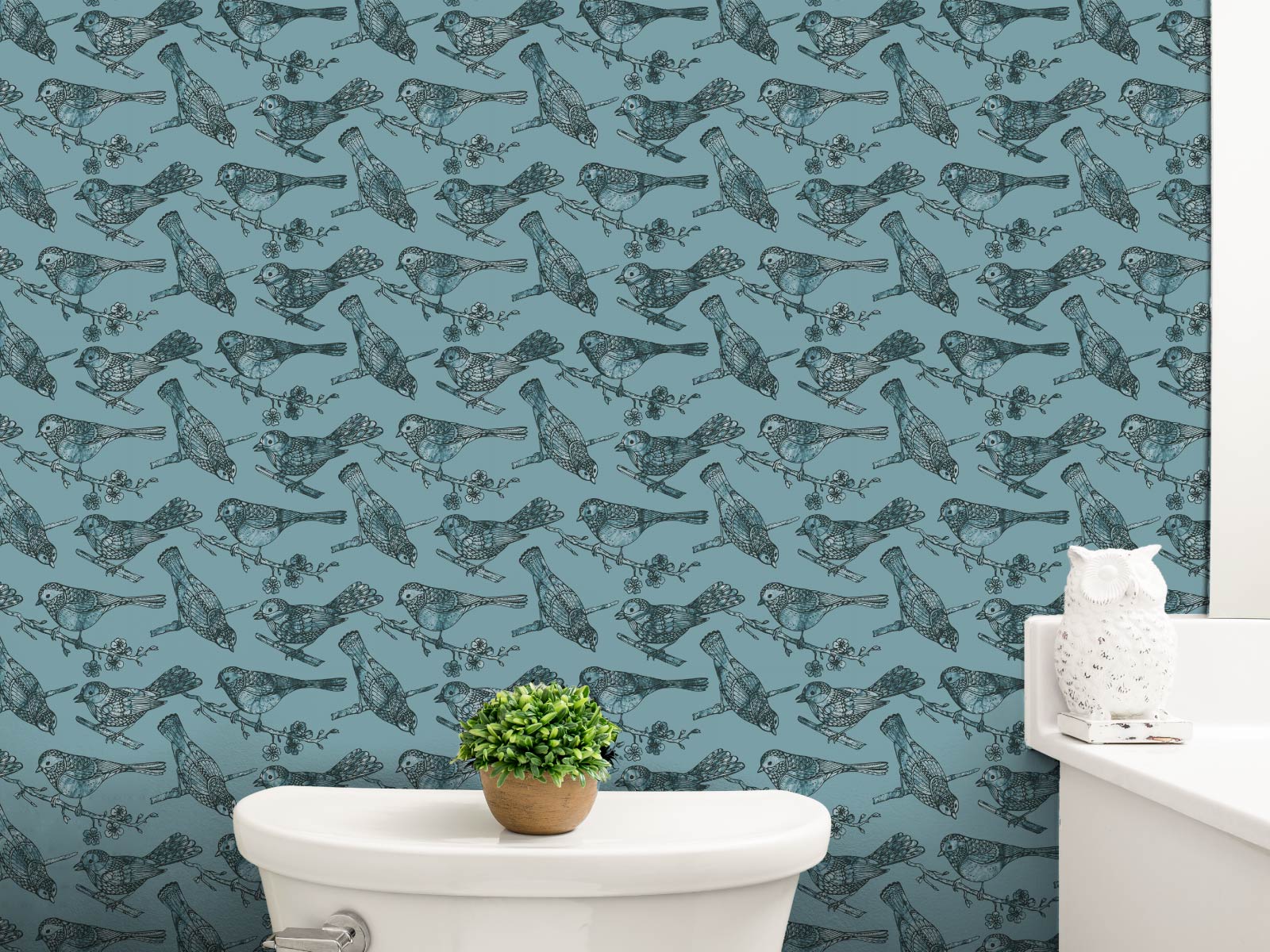 This wallpaper features a beautiful and playful design with small birds perched on delicate branches. The overall effect is charming and delightful, making this wallpaper a perfect choice for any room in need of a touch of whimsy and cheer