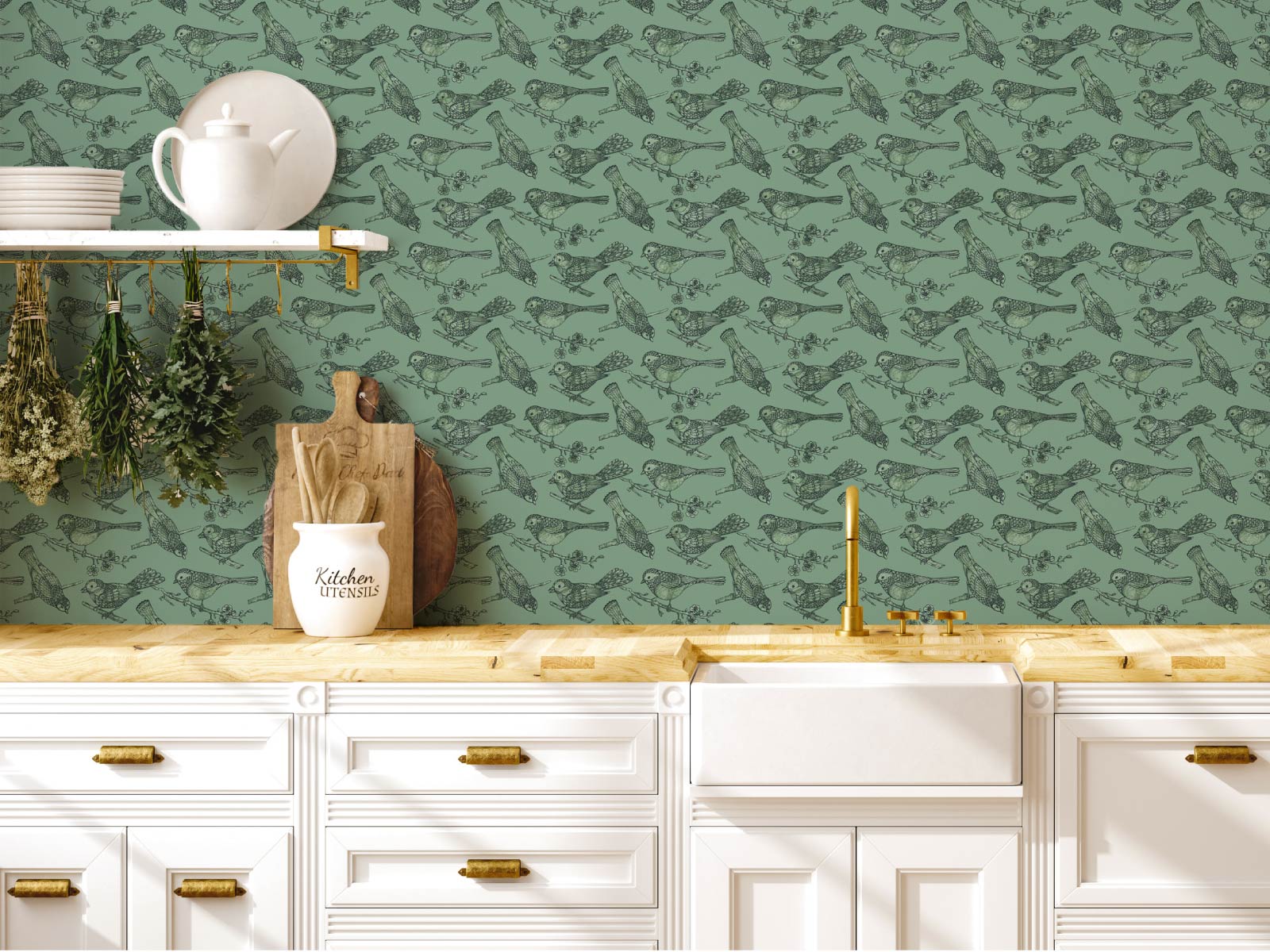 This wallpaper features a beautiful and playful design with small birds perched on delicate branches. The overall effect is charming and delightful, making this wallpaper a perfect choice for any room in need of a touch of whimsy and cheer.