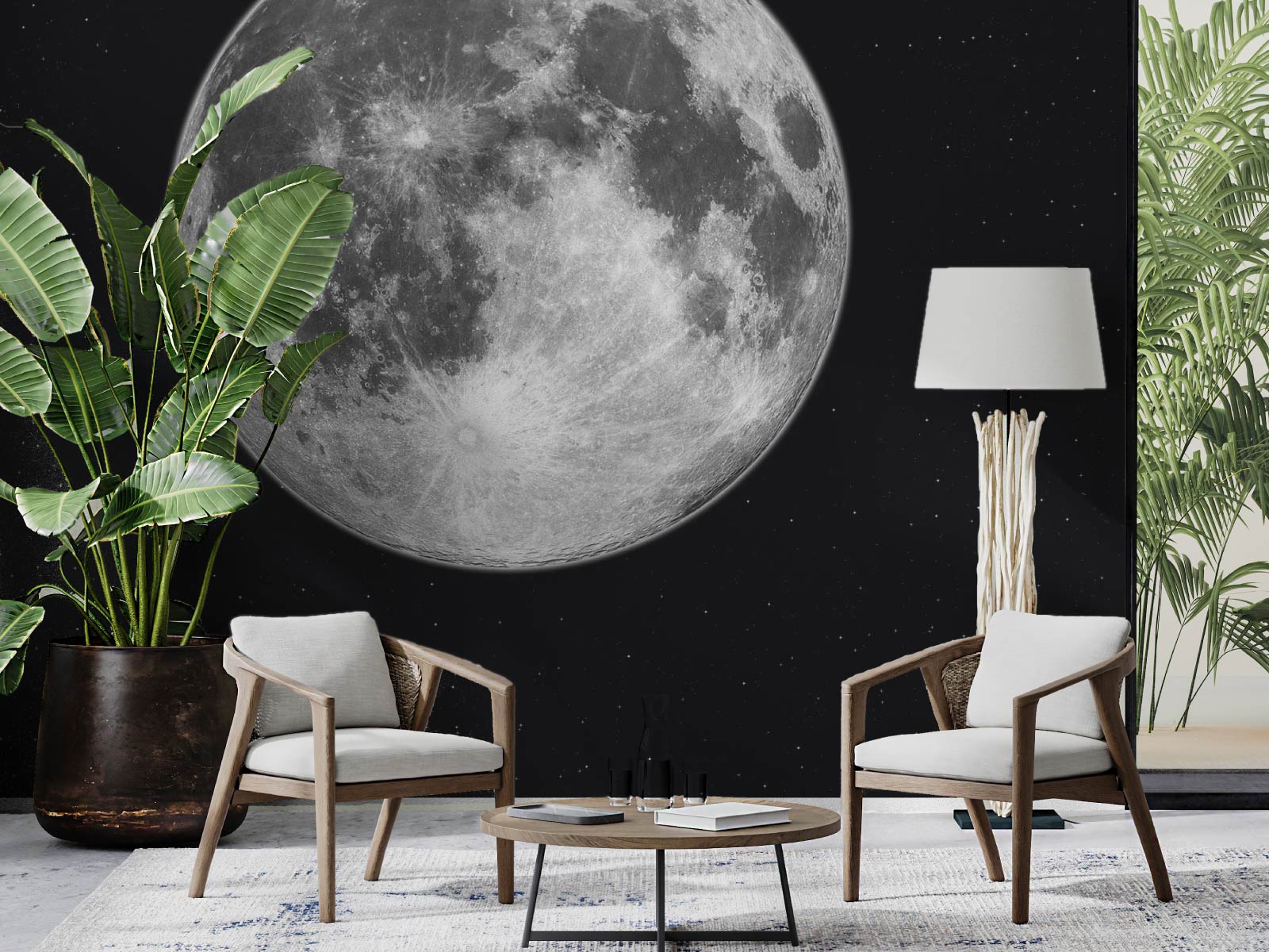 A huge moon in your room! We love this fantastical mural. Marvel at the earth's closest celestial body, which is a distance of 384,400 km from us here on Earth to be precise!
