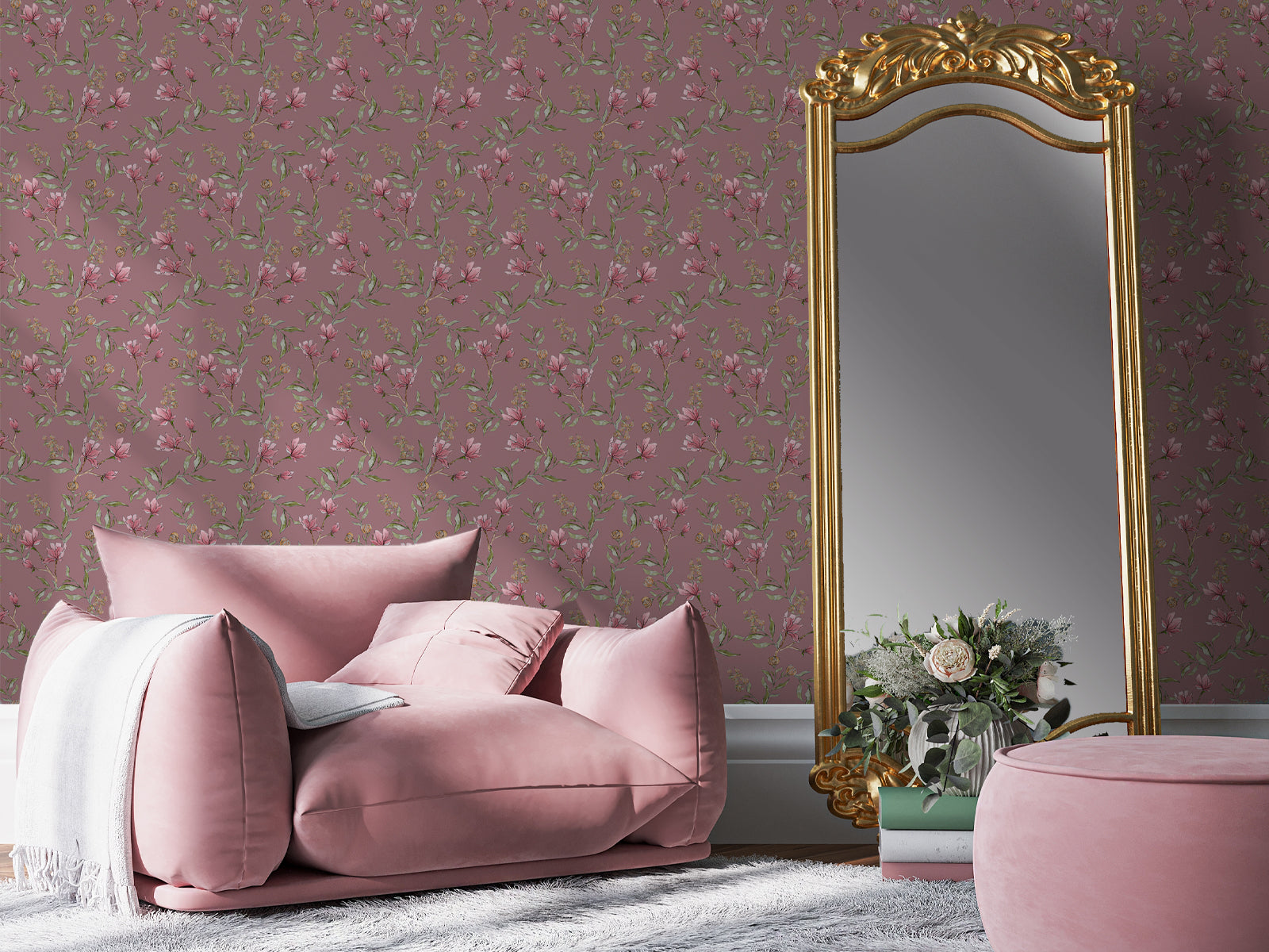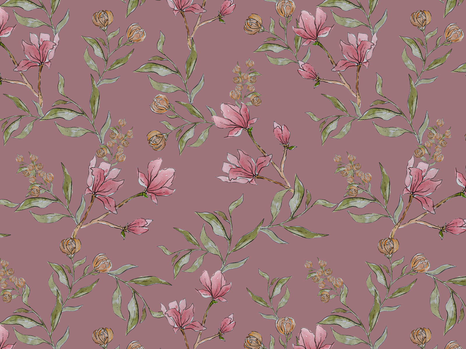 This magnolia blossom features soft, muted pink blooms nestled among green leaves and branches. The delicate watercolour design gives your home a serene and calming atmosphere with its dreamy, ethereal design.