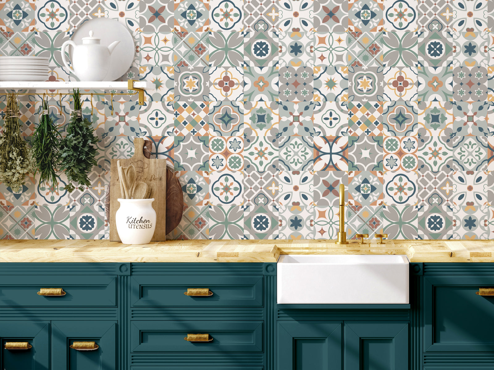 Embrace a Mediterranean vibe in your own home with our intricate Mediterranean tile wallpaper. Perfect for bringing a splash of colour to any kitchen.