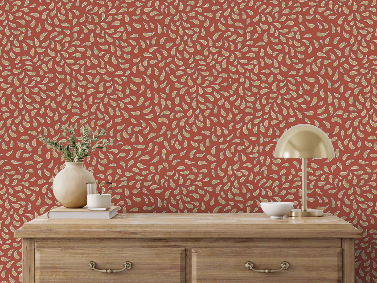 This Indian inspired wallpaper features small curved drops arranged in a repetitive, swirling pattern, creating a sense of movement and energy. It has an elegant and delicate design, which gives it an ornate and decorative feature to your home.