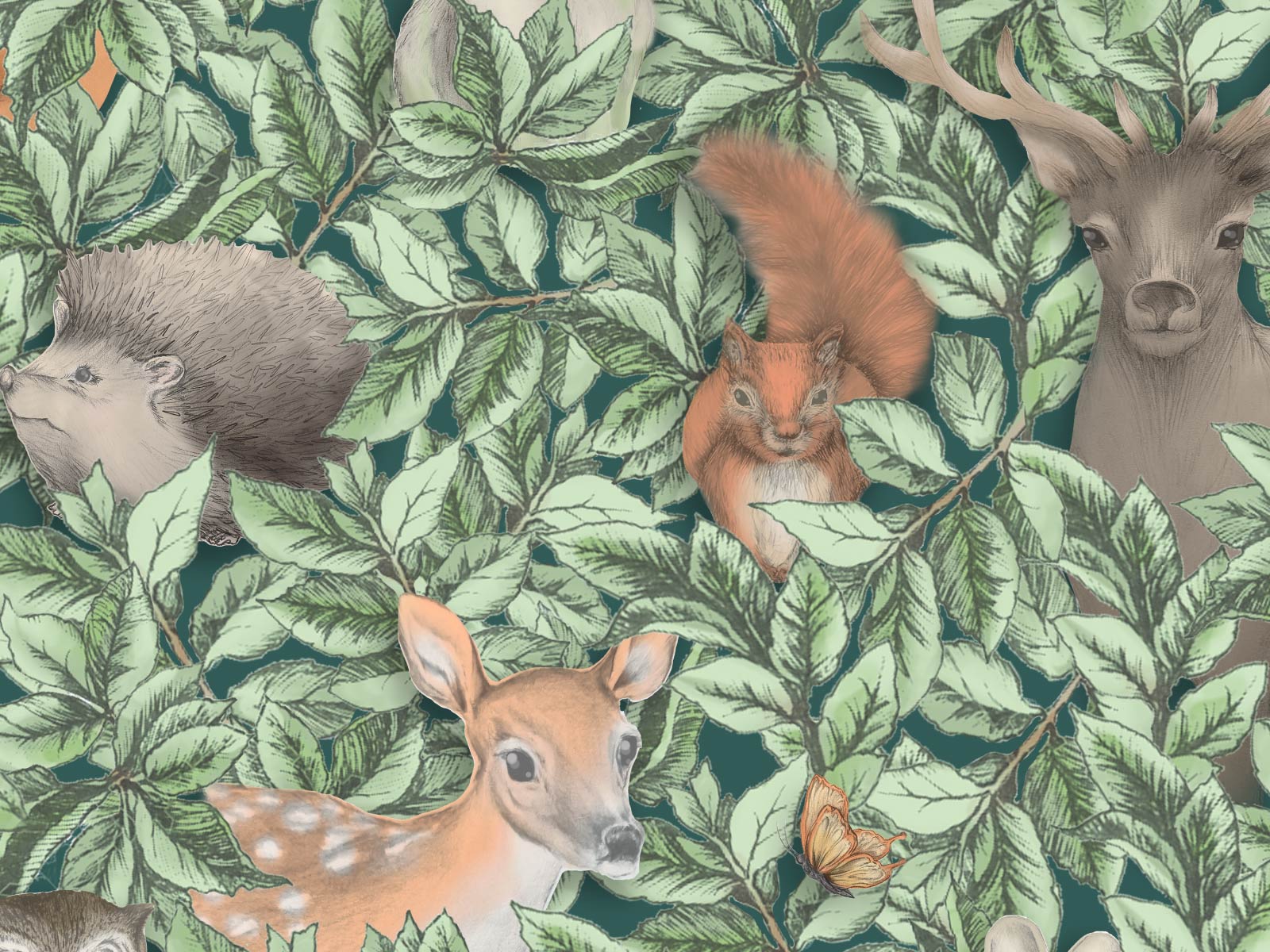 This charming wallpaper features hand drawn rabbits, deer, foxes, hedgehogs and squirrels. Creating a soothing and natural environment for your child. Inspire the next generation through the wonders of the animal kingdom.