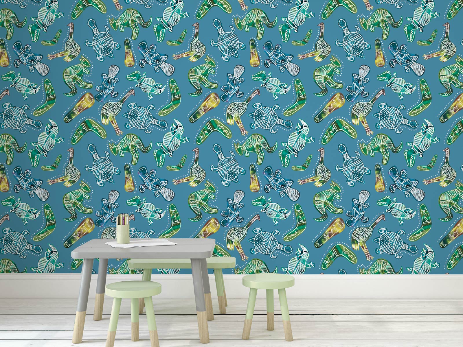 Our remarkable Platypus and Friends wallpaper will create an immersive environment where your child can play, learn and use their imagination. With a variety of Australian wildlife including kangaroos and turtles, it is ideal for a feature wall or full room coverage.