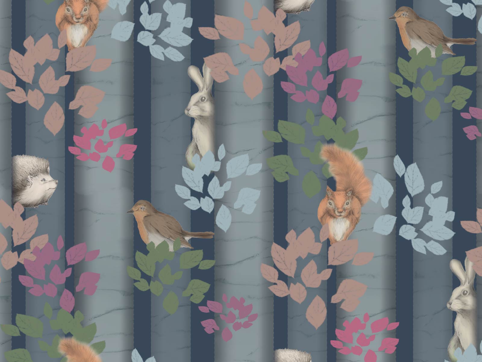With our silver birch and animal wallpaper, you can easily bring a forest theme to a child's bedroom or playroom. This wallpaper features some of the adorable animals that can be found in forests, such as hedgehogs, rabbits, birds and squirrels.
