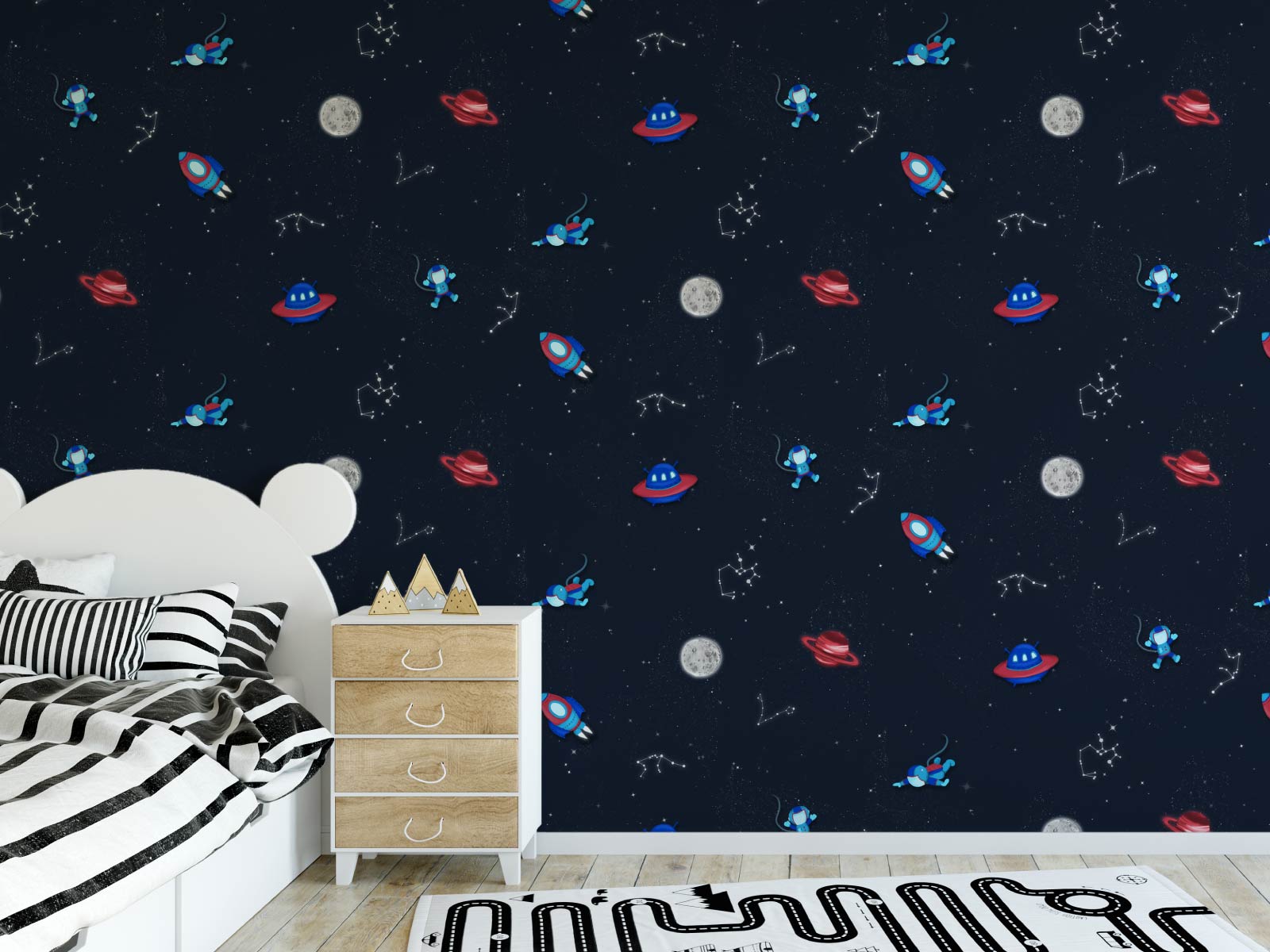 Our Space Explorer wallpaper is designed with rockets, planets, UFO's, and astronauts that will transform your child's bedroom into a unique space themed zone, sparking their imagination and inspiring adventures.