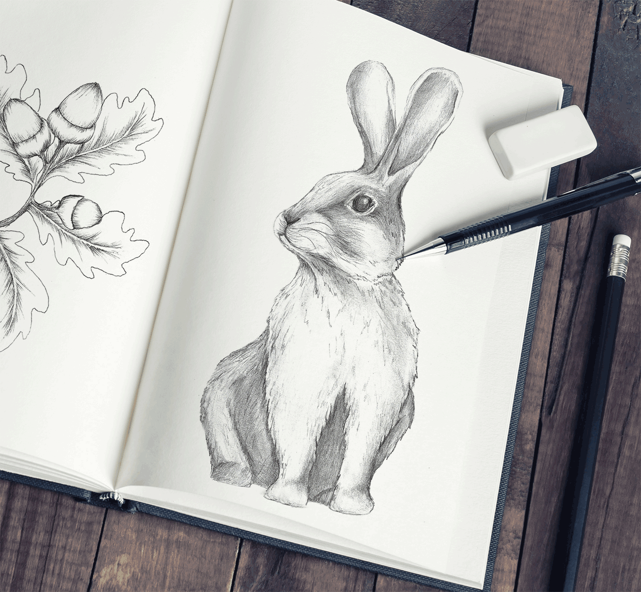 A selection of 3-5 pencil sketch motifs, dependent on design brief. Digitization of artworks and pattern arrangement with colour background.