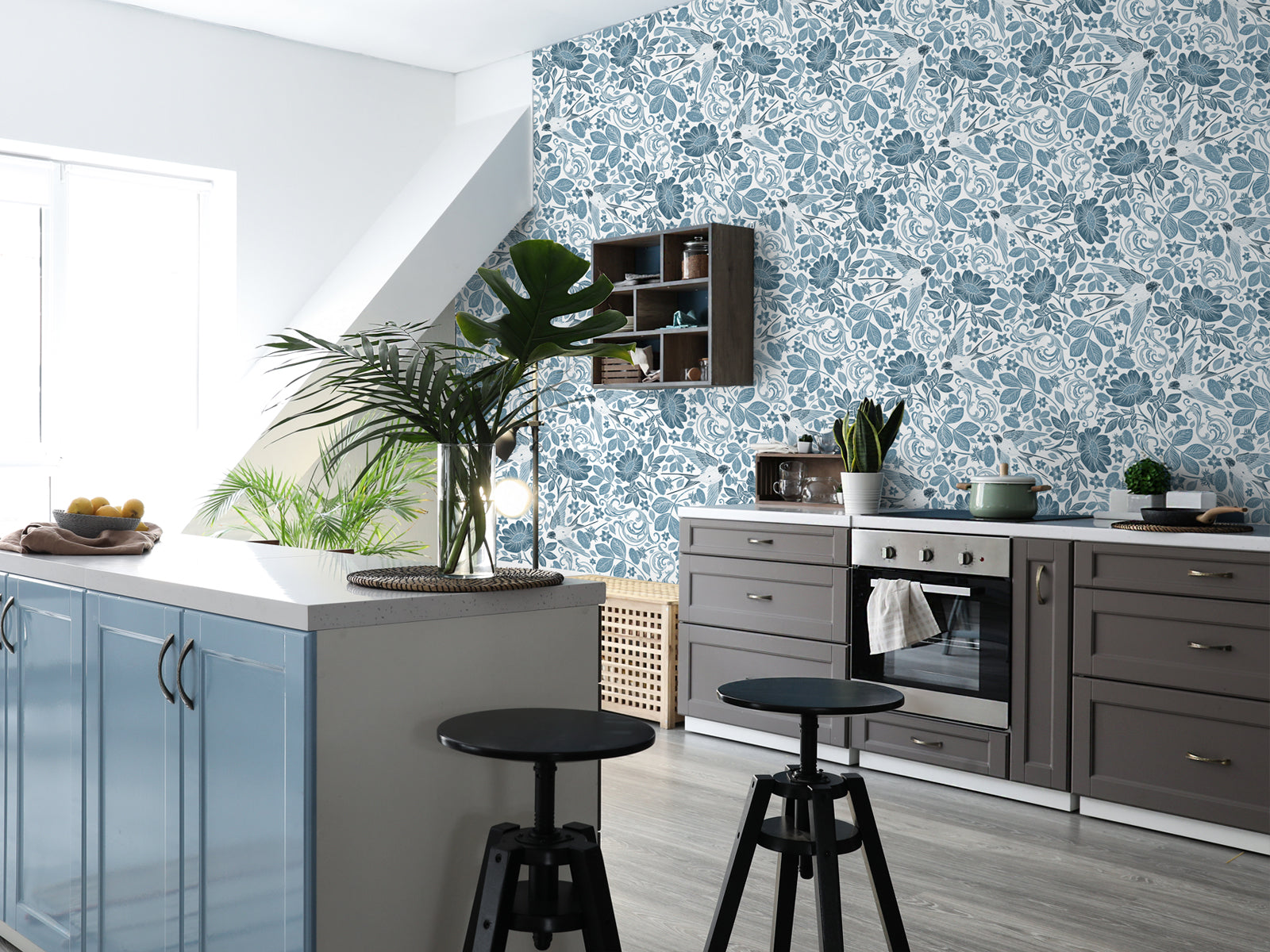 Glide through the air with this majestic Swallow design. Featuring charming flowers and delicate leaves, this intricate wallpaper is ideal for creating a stunning feature wall.