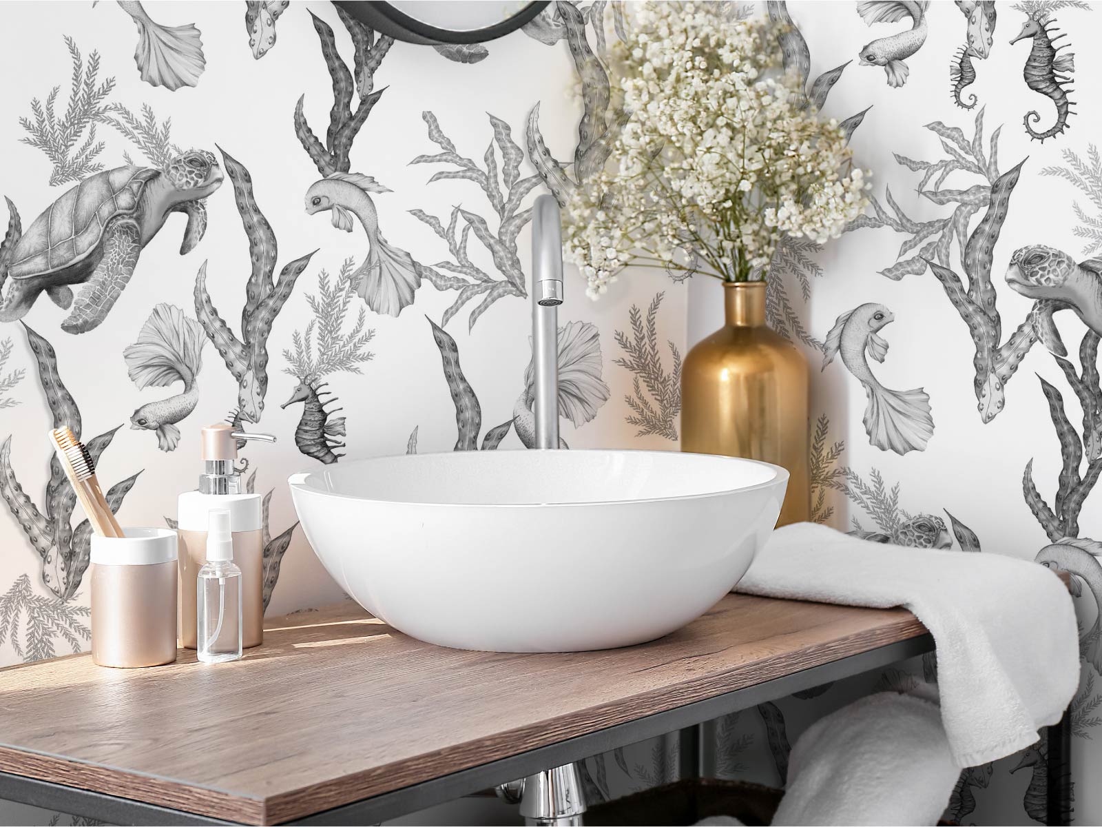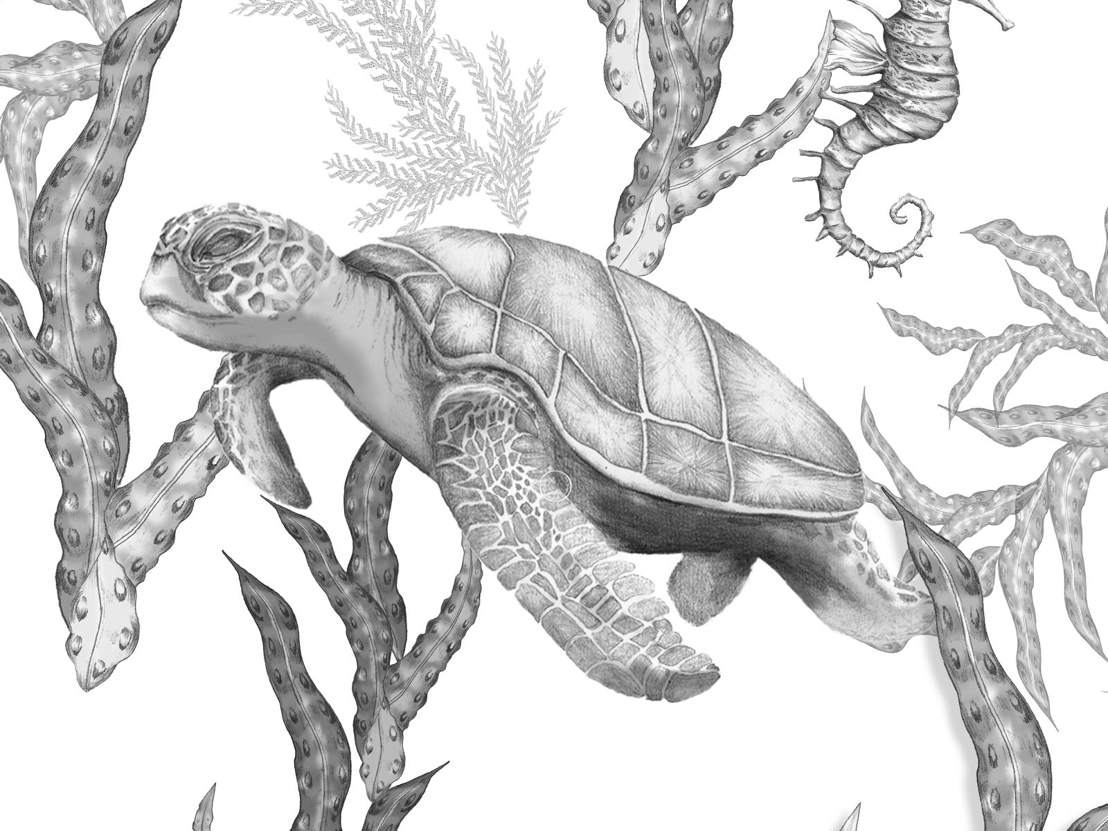 Get your snorkel ready! Discover the wonderful world beneath the waves by diving into the deep blue sea. Featuring turtles, jellyfish, sea horses, and fish, perfect for your child's bedroom or playroom.